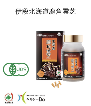 | 特徴 | ①100%鹿角霊芝使用 ②保存料や添加物は一切不使用 ③植物性カプセル被膜使用 ④有機JAS認証取得 ⑤北海道食品機能性表示制度「ヘルシーDo」認定取得 |